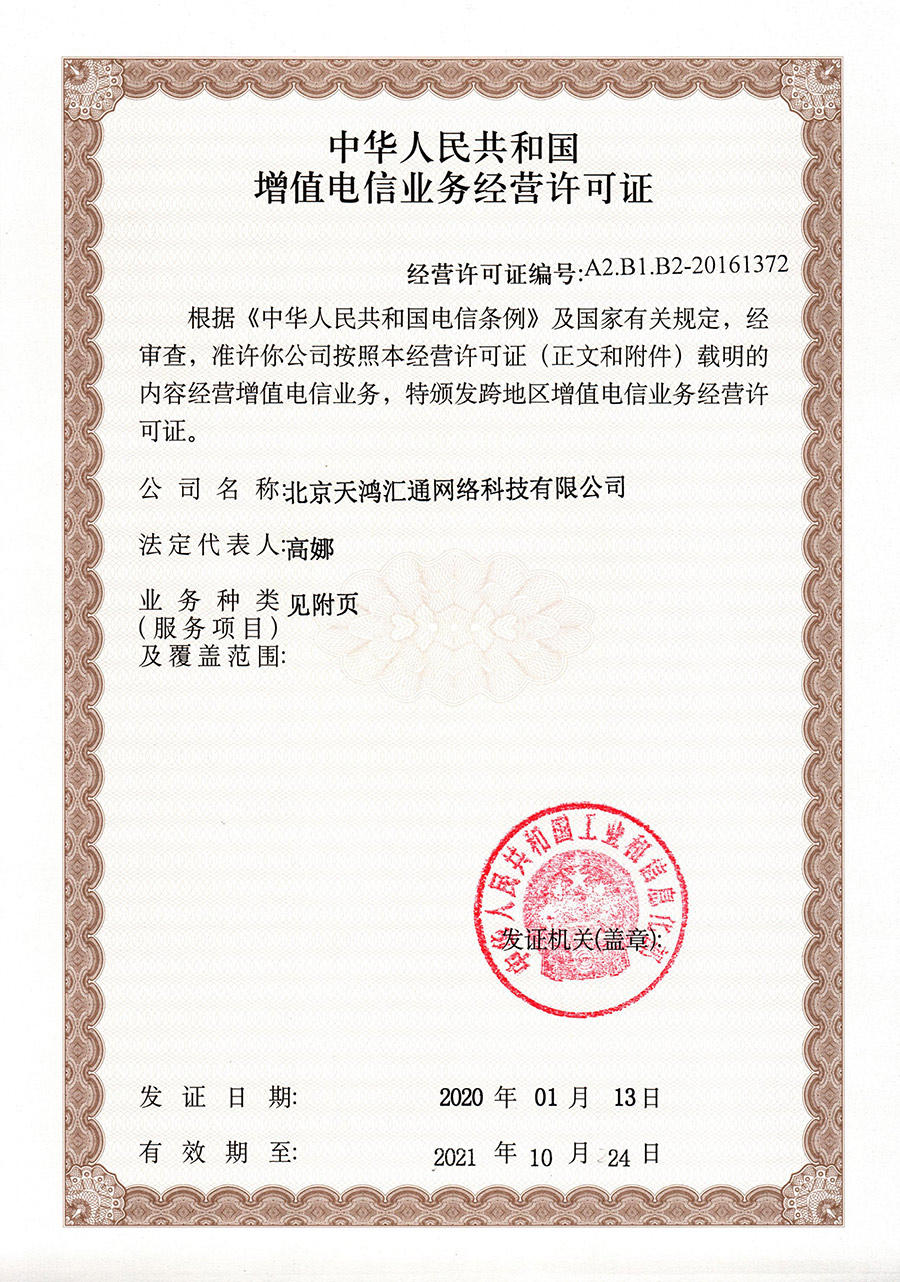 增值電(diàn)信業(yè)務許可(kě €♠)證(全國(guó))