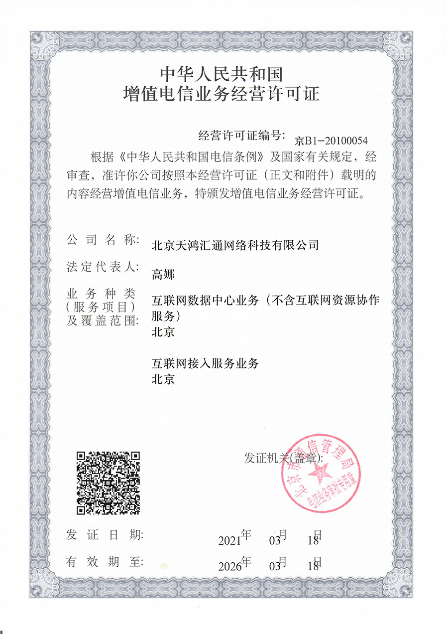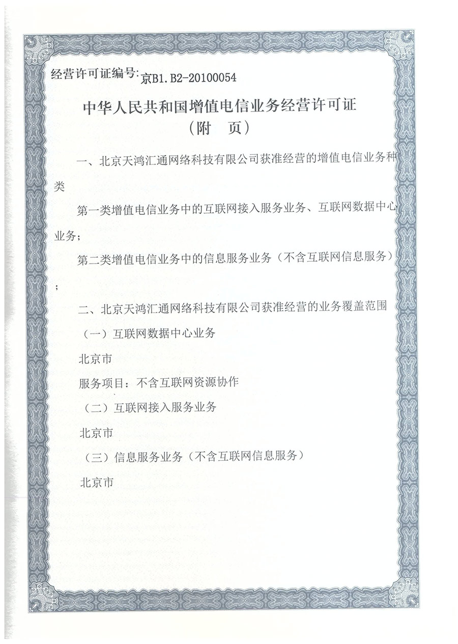 增值電(diàn)信業(yè)務許可(kě)證(∑™北(běi)京)